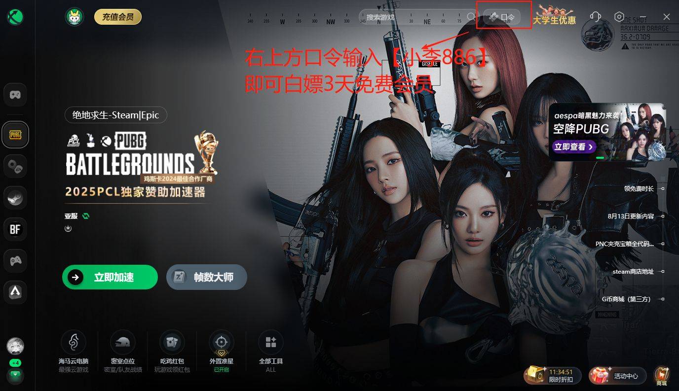 右上角输入口令【小李886】即可白嫖3天有效会员 !
