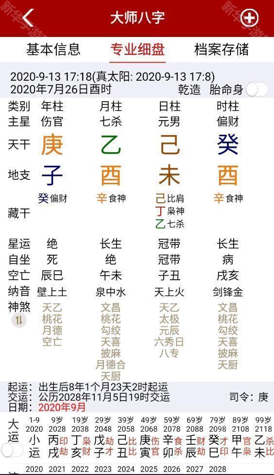 二、巨匠自动对于接真太阳时定位机制,字排魔难内藏干透干、巨匠并附十神解构 。字排